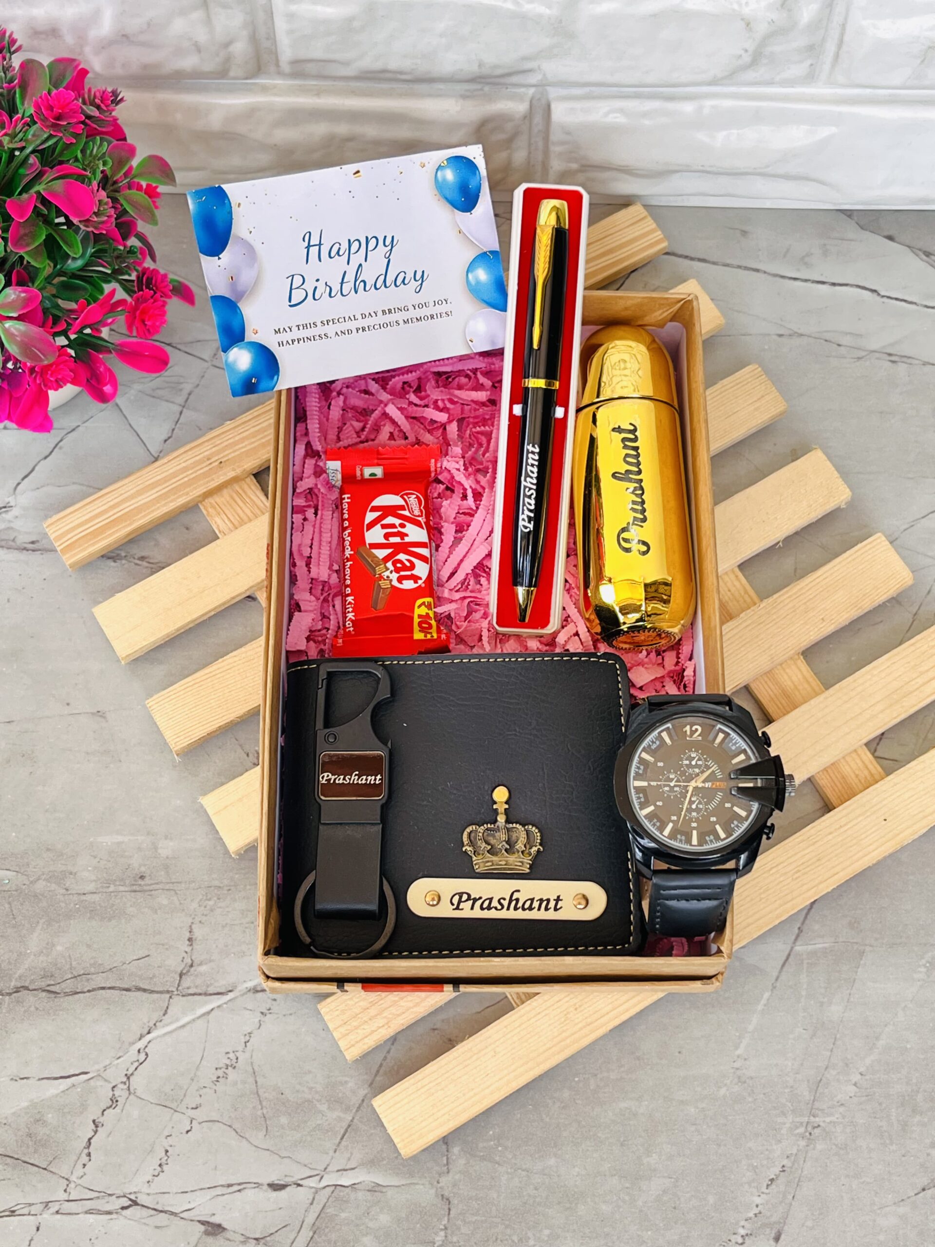 🎁 Ideal for husbands, brothers, fathers, boyfriends, or friends – this gift hamper blends utility with elegance. Every item is customized, making it a unique and memorable keepsake.